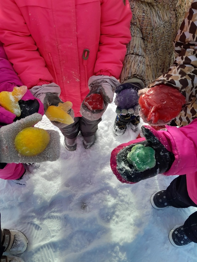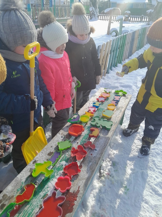 Теперь участок подготовительной группы украшен снежными постройками с цветными льдинами